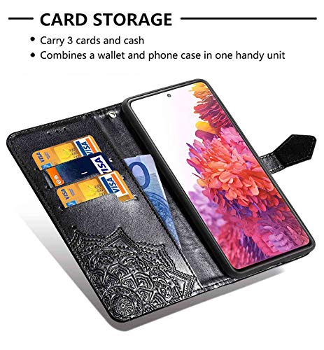 GOGME Cover per Oppo A74 5G | A54 5G Cover, Custodia Chiusura Magnetica Flip Case Stile, Pelle PU/TPU Mandala Sbalzato con Supporto di Stand/Carte Slot. Nero