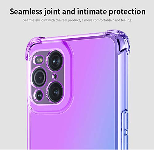 GOGME Cover per Oppo Find X3 PRO + 2 Vetro Temperato, Custodia in Trasparente TPU, [Rinforzare la con Quattro Angoli] Custodia Silicone Morbida TPU Ultra Sottile Case (Rosa/Viola)
