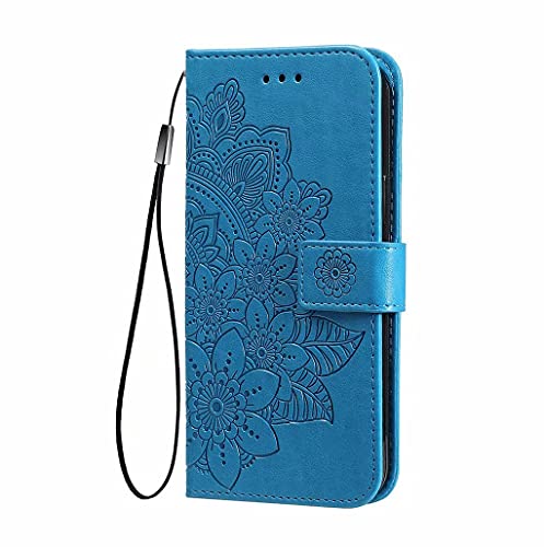 GOGME Cover per Oppo Reno 6 PRO 5G/Reno6 PRO 5G Portafoglio, Bellissimo Fiore a Sette Petali in Rilievo Design in Pelle Custodia, Antiurto Protettiva Custodia per Oppo Reno 6 PRO 5G, Blu