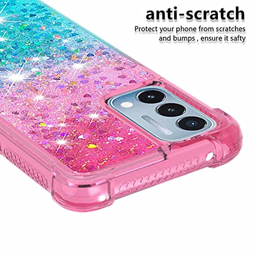 GOGME Cover per Oppo A74 5G / Oppo A54 5G Cover + 2 Vetro Temperato, Liquido Quicksand con Brillantini di Colore Sfumato, Custodia in TPU Antiurto Ultra Sottile in Silicone Morbido, Rosa/Blu