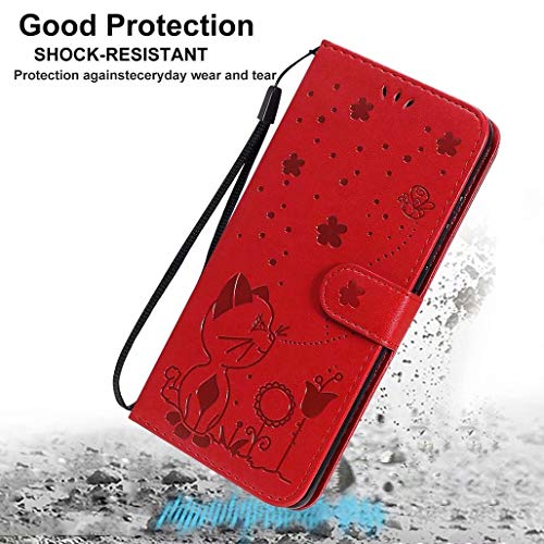 GOGME Cover for Samsung Galaxy A12, Elegante in Rilievo Gatto Modello Design Pelle Portafoglio Flip Custodia, Samsung Galaxy A12 Cover con [Card Slots] [Chiusura Magnetica] [Cavalletto], Rosso
