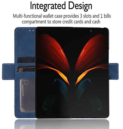 GOGME Cover per Samsung Galaxy Z Fold2 5G Portafoglio, Custodia Chiusura Magnetica Flip Case Stile con Supporto di Stand/Carte Slot, Protettiva Custodia per Samsung Galaxy Z Fold2 5G, Blu