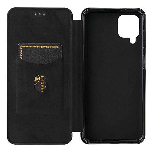 GOGME Cover per Samsung Galaxy A12 / M12 Cover Magnetica Portafoglio, Custodia in Robusto Pannello PC in Fibra di Carbonio + Antiurto TPU + Anello Kickstand con [Slot per schede]. Nero
