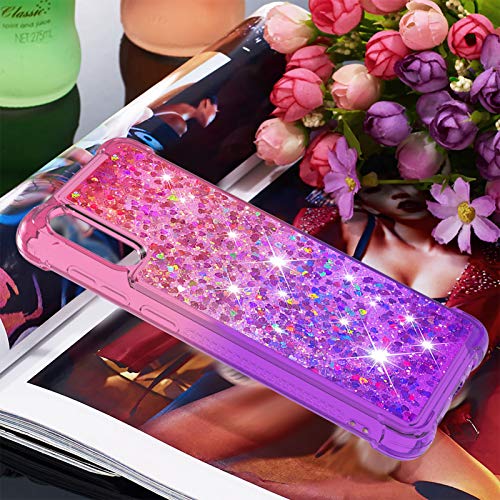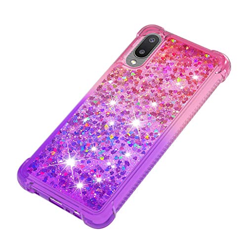 GOGME Cover per Samsung Galaxy A02 Cover + 2 Vetro Temperato, Liquido Quicksand con Brillantini di Colore Sfumato, Custodia in TPU Antiurto Ultra Sottile in Silicone Morbido, Rosa/Porpora