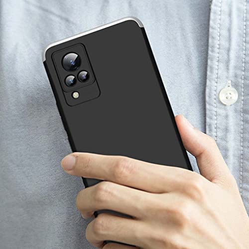 GOGME Cover per Vivo V21 5G/4G Cover, Custodia Protettiva con Tutto Il Corpo Tocco Morbido Setoso, Staccabile Silicone PC Duro Doppio Strato Antiurto Protettivo Custodia, Argento/Nero