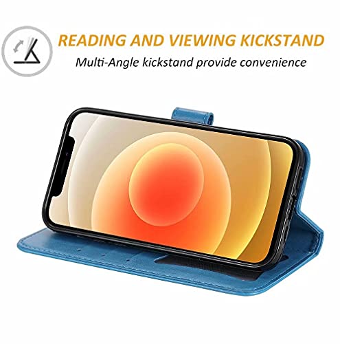 GOGME Cover per Vivo Y72 5G / Vivo Y52 5G Portafoglio, Bellissimo Fiore a Sette Petali in Rilievo Design in Pelle Custodia, Antiurto Protettiva Custodia per Vivo Y72 5G / Vivo Y52 5G, Blu