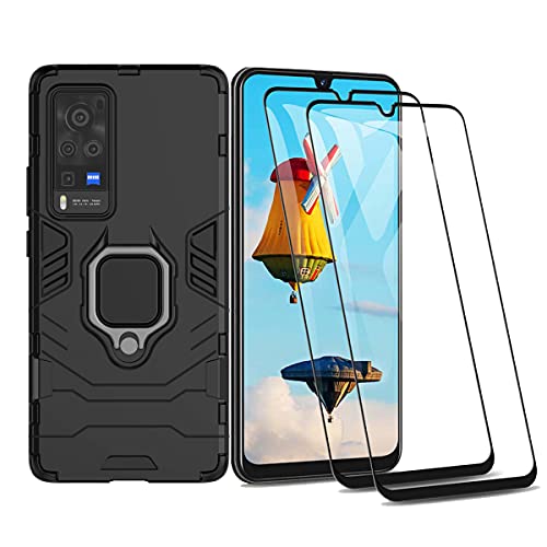 GOGME Cover per Vivo X60 PRO + 2 Vetro Temperato, Armor Custodia con 360 Gradi Girevole Anello e Supporto Magnetico Auto, Silicone TPU e PC Doppio Strato Protettiva Bumper. Nero