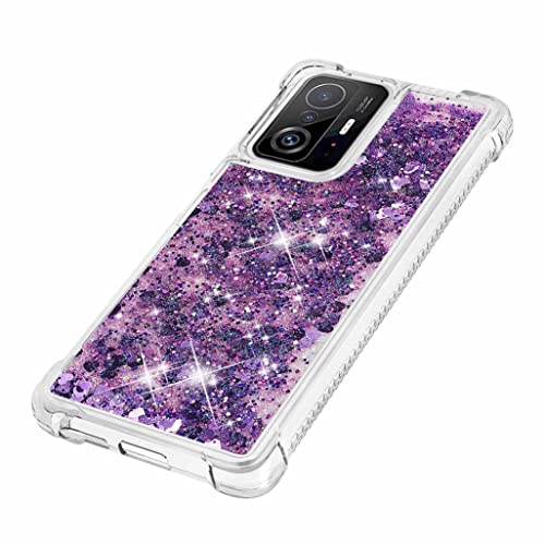 GOGME Cover per Xiaomi 11T PRO 5G/Xiaomi 11T 5G Cover, Custodia in Liquido Quicksand con Brillantini, Xiaomi 11T PRO 5G Case in TPU Antiurto Ultra Sottile in Silicone Morbido, Viola