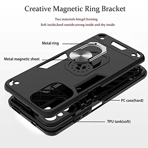 GOGME Cover per Xiaomi Redmi Note 10 4G/Redmi Note 10S, 360°Girevole Regolabile Ring Armor Bumper TPU Case Magnetica Supporto Cover, Heavy Duty Hybrid Armor Silicone Custodia, Nero
