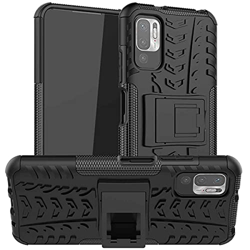 GOGME Cover per Xiaomi Redmi Note 10 5G | Poco M3 PRO 5G, Custodia Protettiva con Supporto, Robusto Pannello Posteriore PC AntiGraffio + Antiurto TPU Dual Layer Armour Ibrida Case. Nero