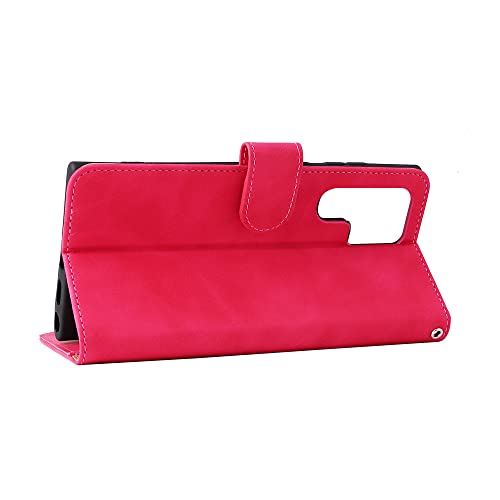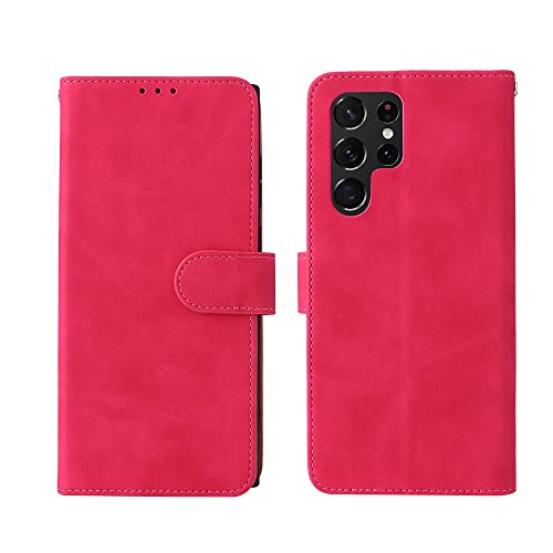 GOGME Leather Folio Cover per Samsung Galaxy S22 Ultra 5G Cover, PU + TPU Leather Wallet Case, Premium Filp Cover Custodia in Pelle Portafoglio con Funzione Stand, Rosso