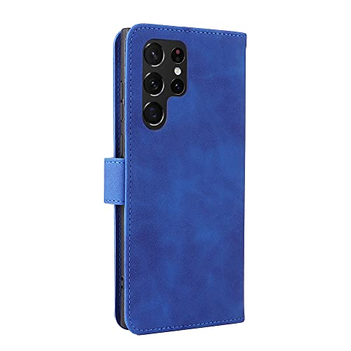 GOGME Leather Folio Cover per Samsung Galaxy S22 Ultra 5G Cover, PU + TPU Leather Wallet Case, Premium Filp Cover Custodia in Pelle Portafoglio con Funzione Stand, Blu