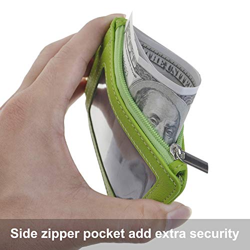 Design innovativo: la finestra ID con copertura trasparente offre visibilità che semplifica la scansione di carte d'identità. Scomparti per carte anteriore e posteriore per una facile gestione e accesso, adatto per la maggior parte delle carte. Tasca laterale con cerniera per contanti, monete, chiavi e altri piccoli oggetti, aggiunge ulteriore sicurezza, portatile da trasportare