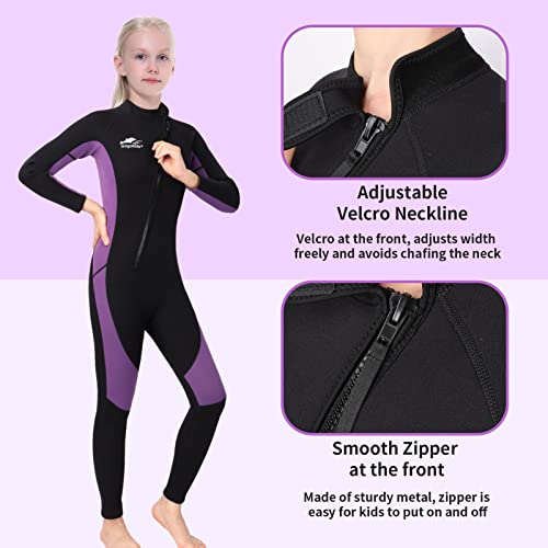 Gogokids Muta Termica per Bambina - Ragazze Muta da Sub Intero 2.5mm Neoprene, Costumi da Bagno Termica Cerniera Frontale per Surf Diving Snorkeling Nuotare