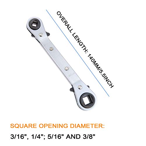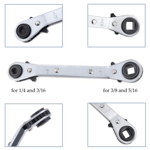 Gohantee - Chiave a cricchetto per refrigerazione, 4 misure diverse, 1/4 x 3/16 quadrato x 3/8 x 5/16 quadrato per aria condizionata