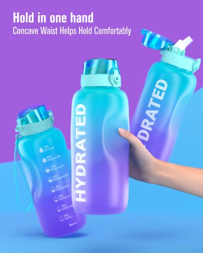 Gohippos Borraccia 1l, Borraccia con Cannuccia e Marca Temporale, Borraccia Motivazionale per Rimanere Idratati, Tritan, Senza BPA, a Prova di Perdite, per Palestra, Scuola, Ufficio (1 Bottiglia)