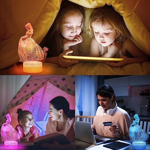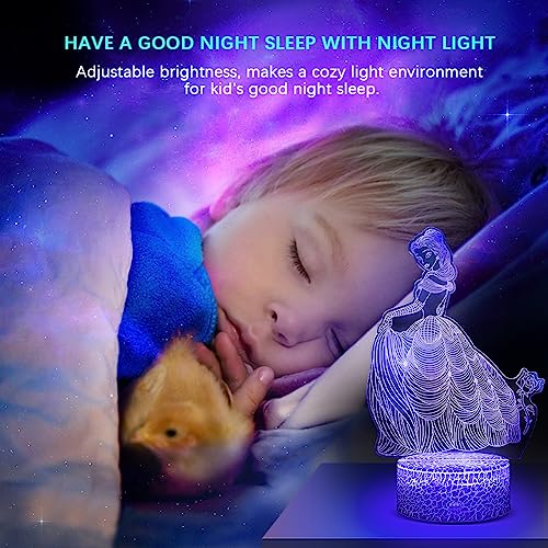 Gohytal Principessa luce notturna per bambini, lampada a illusione 3D, per cameretta dei bambini, 16 colori che cambiano dimmerabile, regalo di Natale per ragazze e ragazzi soggiorno camera