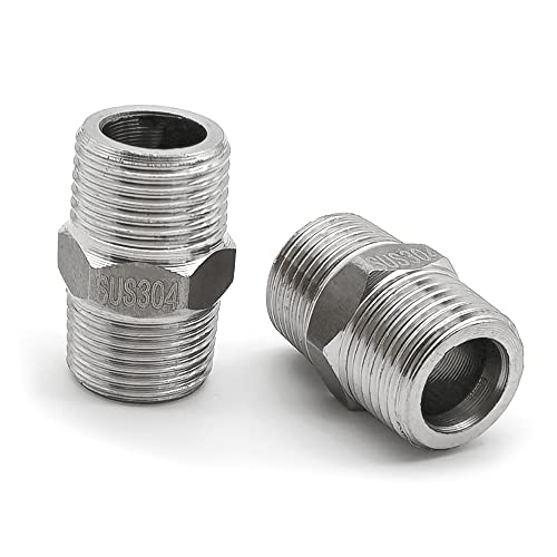 GOIYZTTR 2 Pezzi Nipplo Esagonale in Acciaio Inossidabile Raccordo Filettato Doppio Filettatura Maschio Connettore per Raccordo per Tubo Doccia Esteso