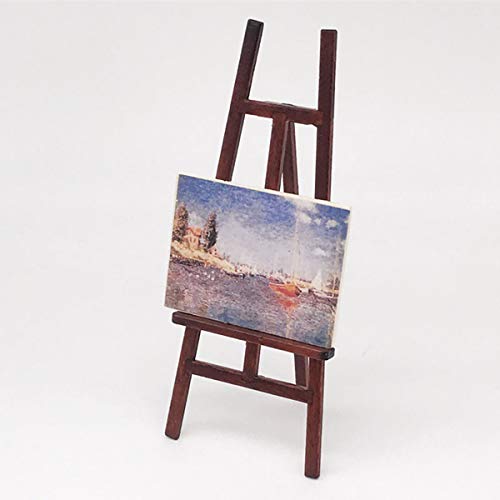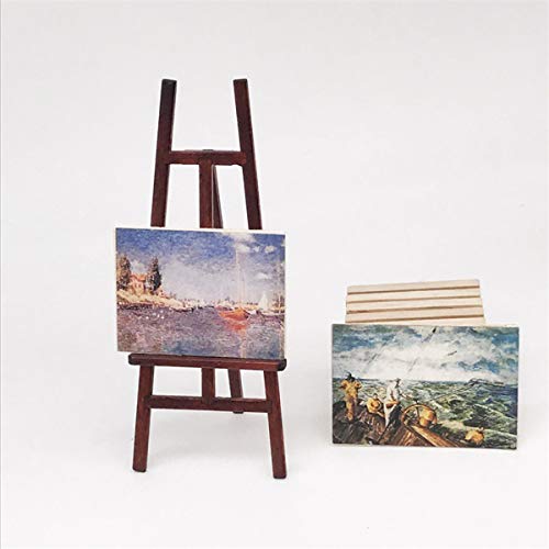 Gojiny - Set di decorazioni in miniatura per casa delle bambole, in miniatura 1:12, con cavalletto in legno in miniatura e 2 dipinti a olio in miniatura