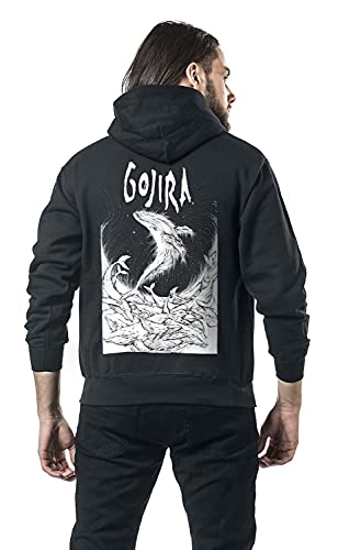 Gojira Woodblock Whales Uomo Felpa con Cappuccio Nero M