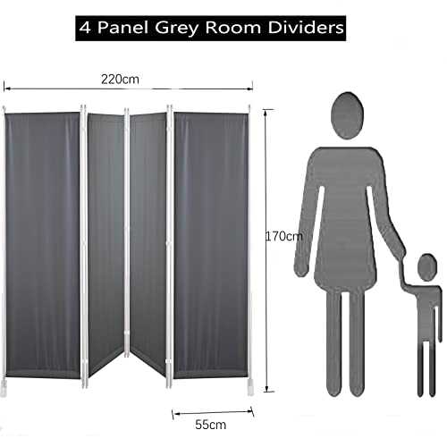 GOJOOASIS Paravento Pieghevole, Divisori per Ambienti, Divisori per Privacy (4 Pezzi 220x170 cm, Grigio)
