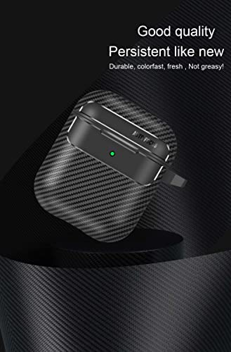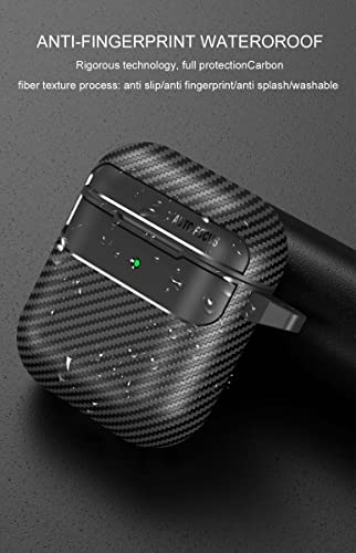 GOKEN Cover per Airpods 1/2, Silicone TPU Fibra di Carbonio Custodia, Protettiva Case con Moschettone, Antiurto Protezione Shell, LED Frontale Visibile, Nero