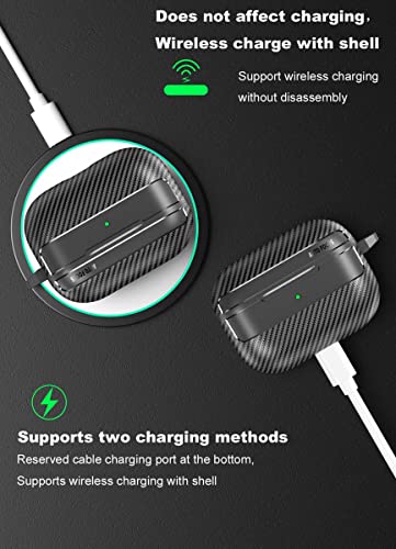 GOKEN Cover per Airpods pro, Silicone TPU Fibra di Carbonio Custodia, Protettiva Case con Moschettone, Antiurto Protezione Shell, LED Frontale Visibile, Grigio