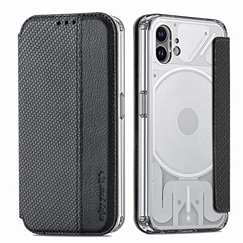 GOKEN Cover per Nothing Phone 1, Custodia Folio in Pelle Flip Wallet Libro Case con Portafoglio, PU/TPU Trasparente Cover con Supporto di Stand/Carte Slot - Nero