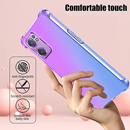 GOKEN Cover per Oppo Find X5 Lite + 2 Vetro Temperato, Silicone TPU a Gradiente Colori Custodia, Soft Rubber Protettiva Case, Antiurto Antiscivolo Protezione Shell, Blu/Rosa