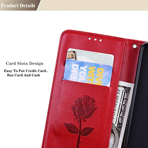 GOKEN Cover per Realme C11 2021 / Realme C20A / Realme C20, Custodia Flip TPU/PU Portafoglio Pelle con Stand/Carte Slot, Chiusura Magnetica 3D Rosa Telefono Case Custodie, Rosso