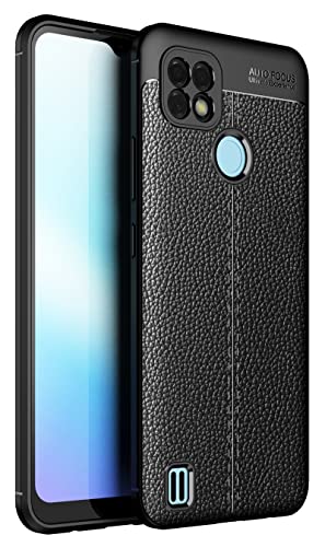 GOKEN Cover per Realme C21, Silicone TPU Custodia, Design in Pelle (Non Pelle), Soft Rubber Protettiva Case, Antiurto Antiscivolo Protezione Shell, Nero