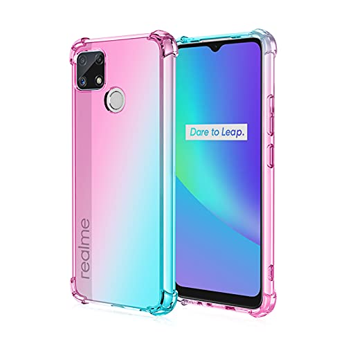 GOKEN Cover per Realme C21, Silicone TPU a Gradiente Colori Custodia, Soft Rubber Protettiva Case, Antiurto Antiscivolo Protezione Shell, Rosa/Verde