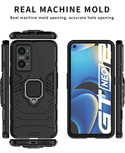 GOKEN Cover per Realme GT2 / Realme GT Neo 2, TPU/PC Dual Layer Hybrid Armor Custodia con Supporto Magnetico Auto, Silicone Cover con 360° Girevole Anello,Antiurto Protezione Shell, Nero