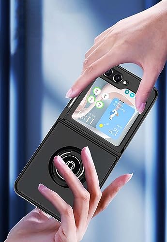 GOKEN Cover per Samsung Galaxy Z Flip5 5G, Case Custodia Antiurto con Bordo in Silicone TPU Morbido, Retro in PC Rigido Semi-Trasparente Grigio Opaco, con Anello di Supporto -Blu