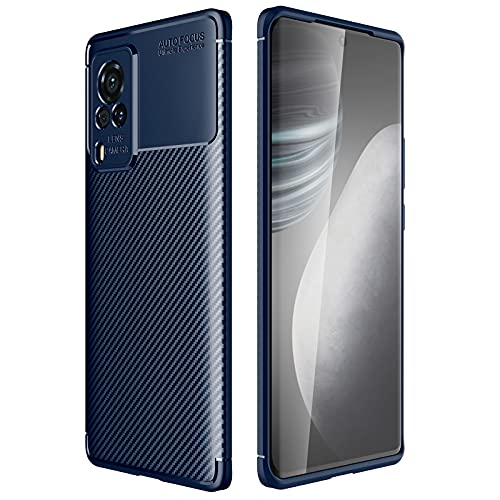 GOKEN Cover per Vivo X60 PRO 5G, Silicone TPU Fibra di Carbonio Custodia, Soft Rubber Protettiva Case, Antiurto Antiscivolo Protezione Shell, Blu