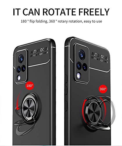 GOKEN Cover per Vivo V21 5G + 2 Vetro Temperato, TPU Silicone Custodia con 360° Girevole Anello, Soft Rubber Protettiva Case, Antiurto Antiscivolo Protezione Shell, Nero+Nero