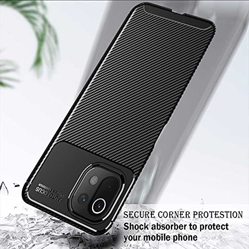 GOKEN Cover per Xiaomi Mi 11 Lite 5G NE | Mi 11 Lite 5G | Mi 11 Lite + 2 Vetro Temperato, Silicone TPU Fibra di Carbonio Custodia, Soft Rubber Protettiva Case, Antiurto Antiscivolo Shell, Nero