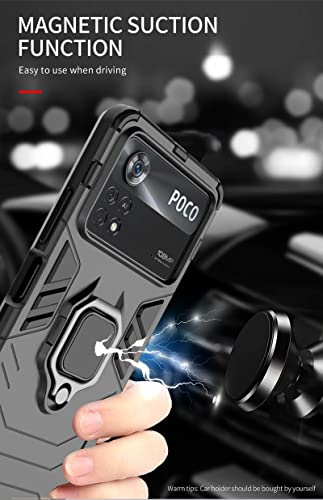 【Materiale】La custodia per Xiaomi Poco X4 Pro 5G è realizzata in morbido silicone TPU + dorso del PC ed è dotata di un elegante anello che può essere ruotato di 360 ° sul retro della custodia
