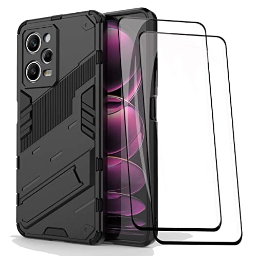 GOKEN Cover per Xiaomi Poco X5 PRO 5G + 2 Vetro Temperato, Silicone TPU/PC Dual Layer Hybrid Armor Custodia con Supporto Verticale e Orizzontale,Antiurto Protezione Shell, Nero