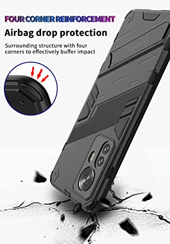 GOKEN Cover per Xiaomi 12 PRO + 2 Vetro Temperato, Silicone TPU/PC Dual Layer Hybrid Armor Custodia con Supporto Verticale e Orizzontale,Antiurto Protezione Shell, Grigio