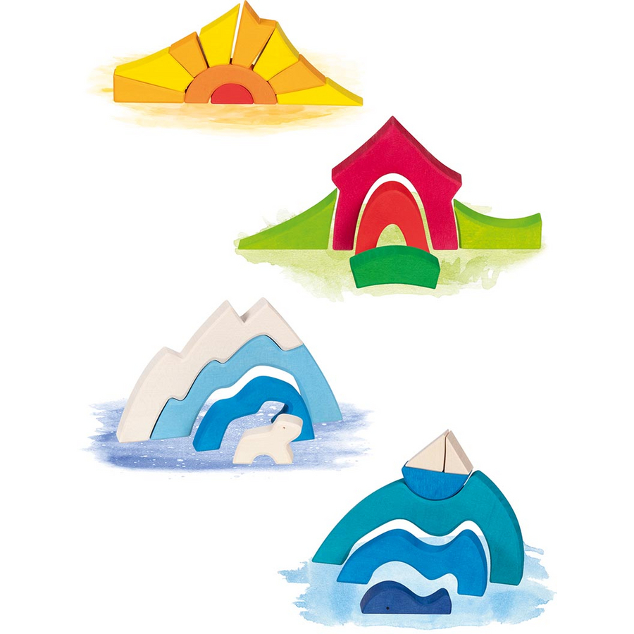 Dettagli del prodotto: Questi blocchi da costruzione versatili possono essere utilizzati per costruire bellissime grotte, paesaggi e strutture creative - e se siete fortunati, l'orso polare e la balena vi faranno visita. Grazie al loro materiale naturale, i blocchi da costruzione forniscono stimoli tattili e visivi per un gioco pieno di gioia di autocreazione. Dimensioni e peso: Dimensioni (lunghezza x larghezza x altezza): 23 x 23 x 3 cm Peso del prodotto: 0,8 kg Materiale e cura: Materiale: Legno