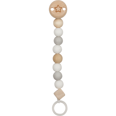 Dettagli del prodotto: Età: dalla nascita La catenella portaciuccio può essere semplicemente agganciata ai vestiti del bambino per evitare che il ciuccio vada perso Dimensioni e peso: Dimensioni del prodotto (lunghezza): 21 cm Peso: 0,064 kg Materiale e cura: Materiale: legno, silicone Istruzioni per la cura: Pulire con un panno umido Incluso nella consegna: Catena succhietto star grey Avvertenze e istruzioni di sicurezza: Attenzione: assicurarsi che il ciondolo sia sempre attaccato all'indumento o alla carrozzina, controllare regolarmente la catena del succhietto e rimuoverla immediatamente se è difettosa o danneggiata. Non allungare mai la catenina e non attaccarla a corde, nastri, cinghie o parti di abbigliamento allentate, perché c'è il rischio di strangolamento. Quando si pulisce la catena per manichini, assicurarsi che venga risciacquata con acqua calda e sapone neutro, lasciata asciugare all'aria ed evitare l'uso di detergenti aggressivi, che potrebbero danneggiare la catena per manichini, e prodotta in conformità alla norma DIN EN 12568:2007.