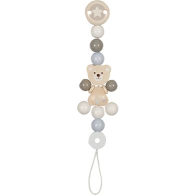 Dettagli del prodotto: Età: dalla nascita Le catene porta succhietto si agganciano semplicemente ai vestiti del bambino per evitare che il succhietto vada perso Dimensioni e peso: Dimensioni da montato (lunghezza): 21 cm Peso: 0,07 kg Materiale e cura: Materiale: legno, metallo Istruzioni per la cura: pulire con un panno umido Incluso nella consegna: Catena orsetto fittizia Attenzione Assicurarsi che il ciondolo sia sempre attaccato al capo d'abbigliamento o alla carrozzina, controllare regolarmente la catenella e rimuoverla immediatamente se è difettosa o danneggiata. Non allungare mai la catena portaciuccio e non attaccarla a corde, nastri, cinghie o parti sciolte degli indumenti. Il bambino potrebbe strangolarsi. Quando si pulisce la catena portaciuccio, assicurarsi che venga risciacquata con acqua tiepida e sapone neutro, lasciata asciugare all'aria ed evitare l'uso di detergenti aggressivi che potrebbero danneggiare la catena portaciuccio. la catena portaciuccio è stata prodotta in conformità alla norma DIN EN 12568:2007.