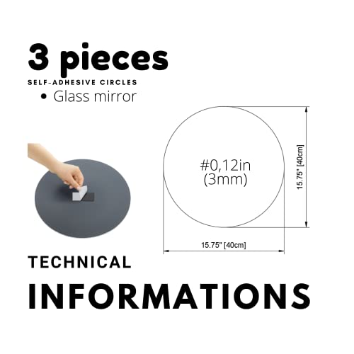 SPECIFICHE: 40 cm x 40 cm. Spessore del vetro: 3 mm. Il set è composto da tre specchi e un nastro autoadesivo.
