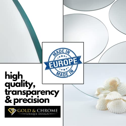 GOLD&CHROME UNIQUE DESIGN Specchi da Parete in Cristallo, Set di 4 Pezzi, Rotondo, 35 cm x 35 cm x 0,3 cm, 0,7 kg, Autoadesivo, Nastro Incluso, Bordo a C, Moderno, Minimalista