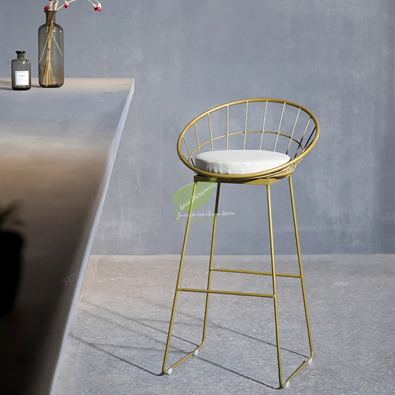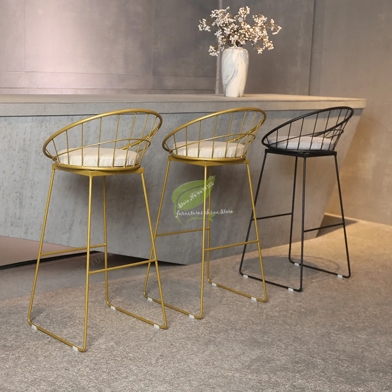Gold Stool Bar Tabouret De Iron Bar Stools Modern Seat Beauty Salon Furniture Make Up Bar Chiar Front High Stool Creative Simple