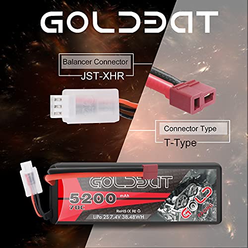 GOLDBAT Batteria RC 5200 mAh 7,4 V 2S 70C LiPo Batteria con Deans Stecker per RC Auto Barca Camion Elicottero Aereo ...