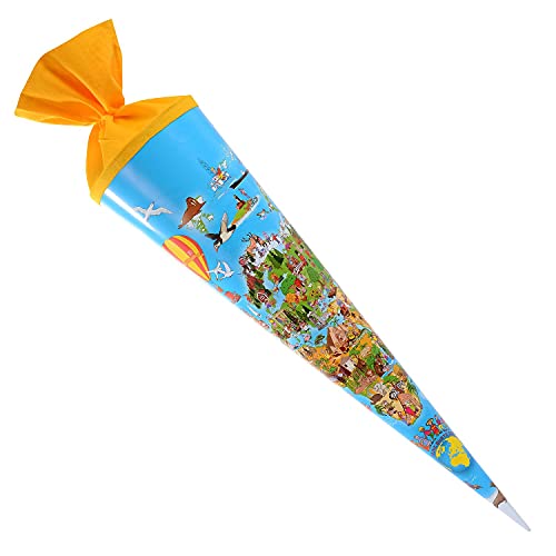 Cono per la scuola rinforzato in cartone laccato, ideale per iniziare a scuola, età: 6-8 anni, con motivo mappa del mondo, 70 cm