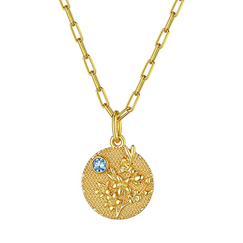 GOLDCHIC JEWELRY Collana di Fiori di Marzo per Donna, Ciondolo Disco Rotondo Birthstone Creato Gioielli con Acquamarina