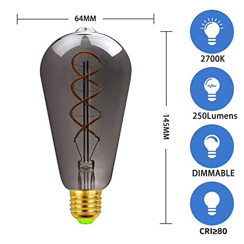 Golden Buble Lampadina Edison Stile Vintage Lampadina LED a Filamento ST64 4W Spirale di fumo Dimmerabile 220-240V E27 Lampadina Decorativa Speciale